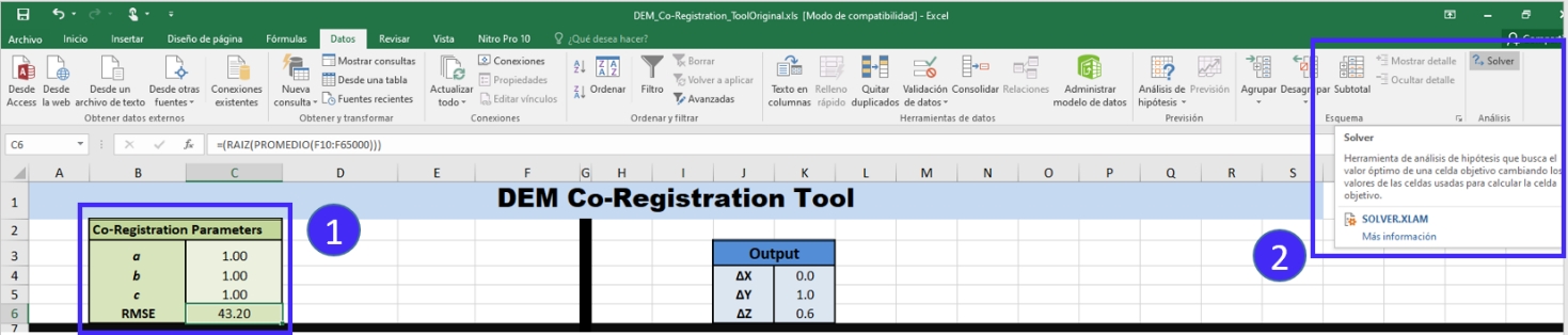 Fig. 5.13 Solver configuration to be set in the DEM Co-Registration Excel Tool.¶