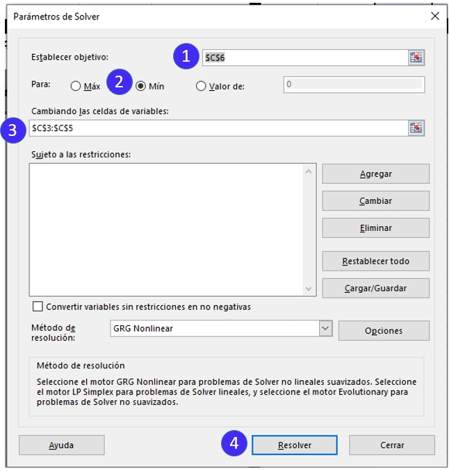ain cellC3,bin cellC4, andcin cellC5. To do so, set the parameters equal to 1 (initial value).