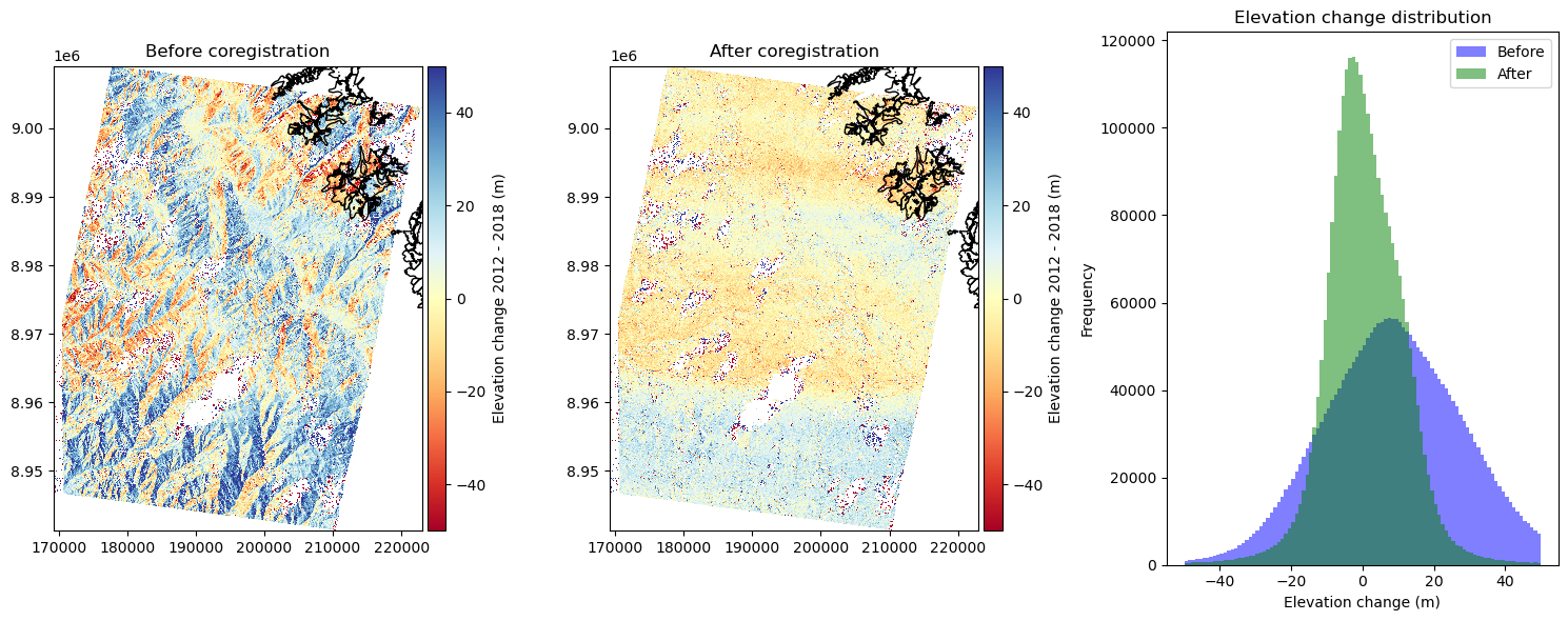 Nuth, C. and Kääb, A. (2011): Co-registration and bias corrections of satellite elevation data sets for quantifying glacier thickness change, The Cryosphere, 5, 271-290, https://doi.org/10.5194/tc-5-271-2011.