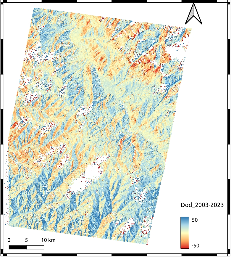Fig. 5.18 Difference of DEMs (DoD) between 2023 and 2003.¶